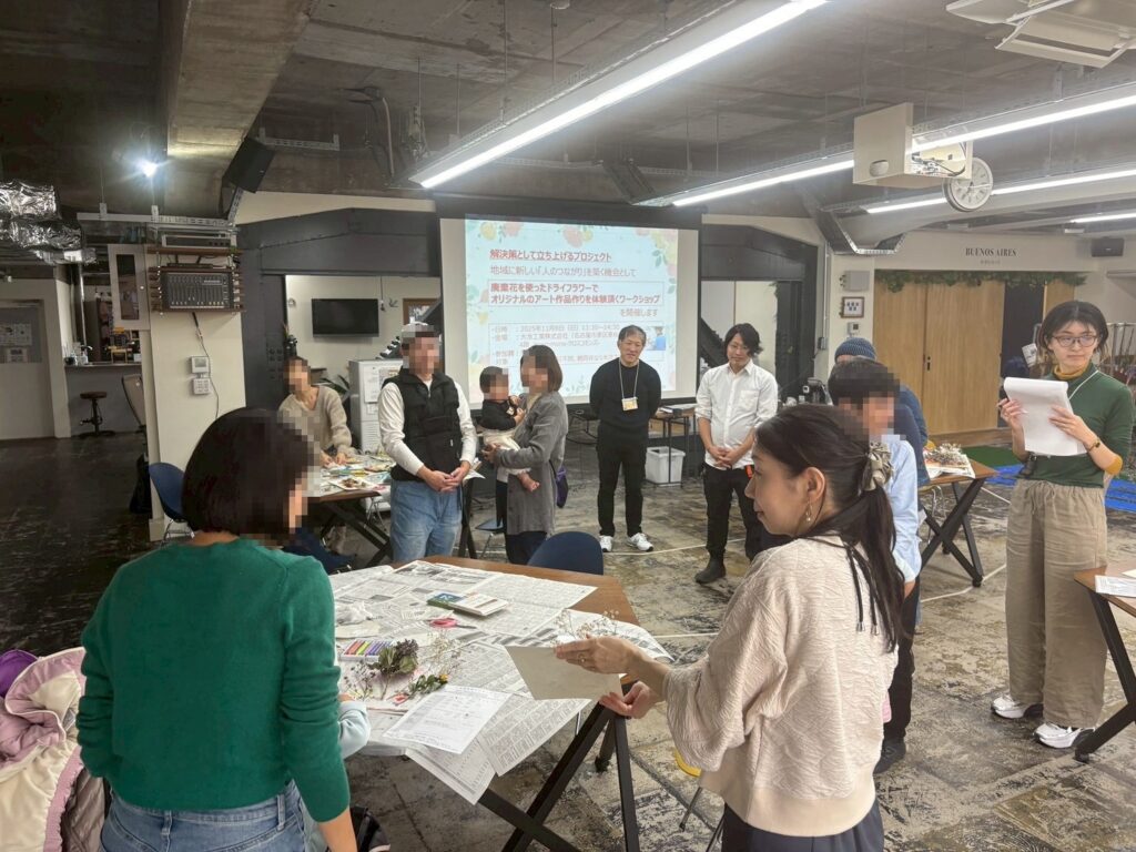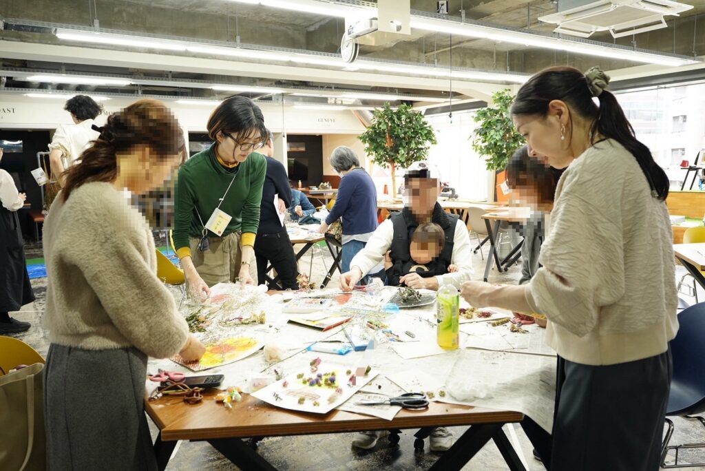 ドライフラワーを使ったアート体験を実施し、世代や職業を問わず多様な参加者が集いました。
